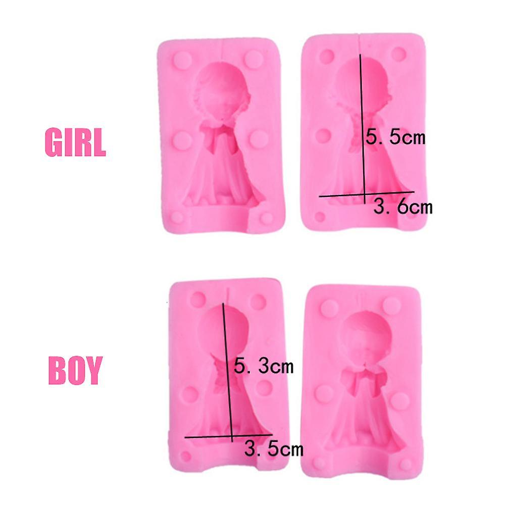 3D Angel Boy & Girl Silicone Mold 7.3x4.7x4.5cm Pink DIY Tool