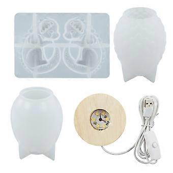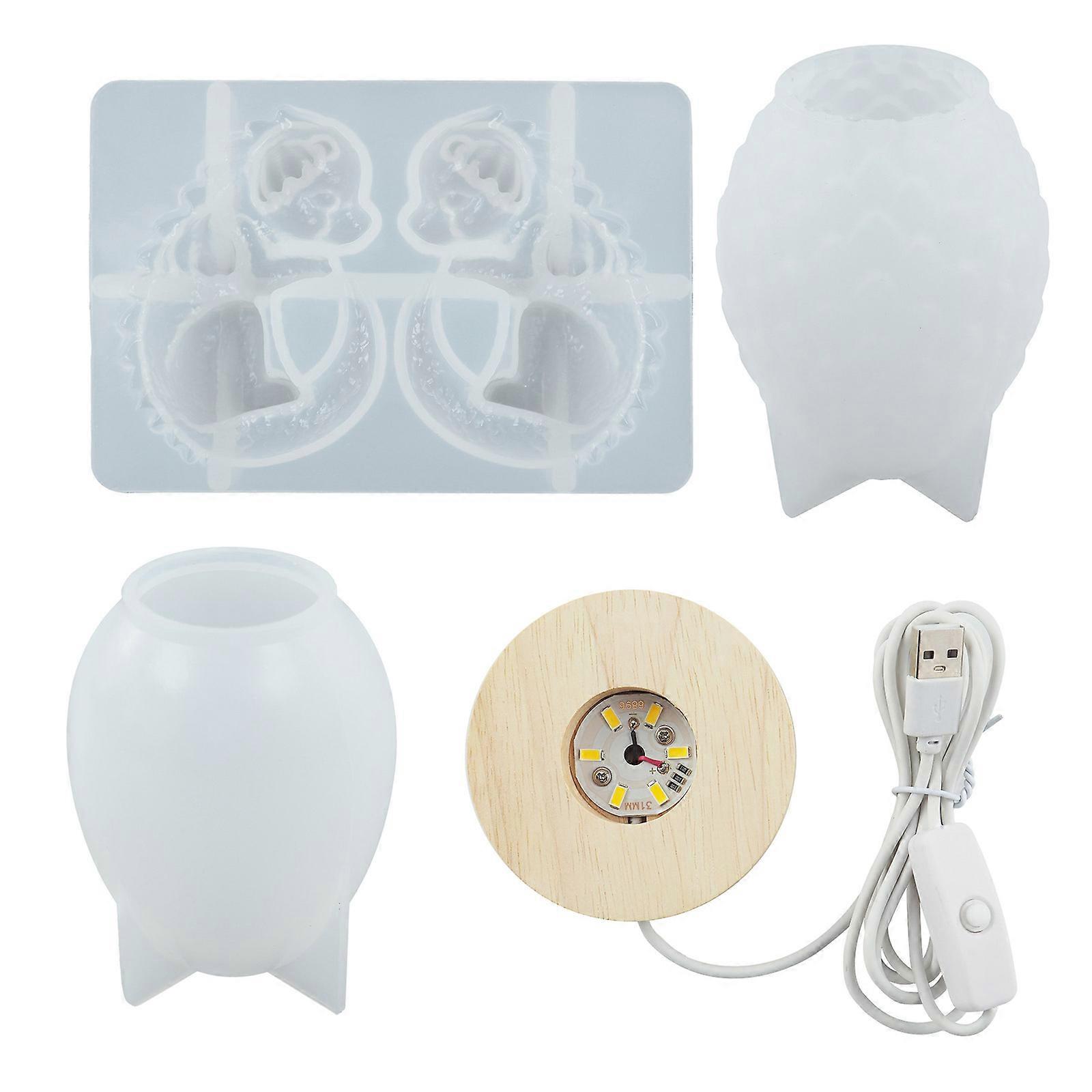 Crystal Scaled Dragon Egg Resin Mold LED Silicone Mold with USB Powered Wooden Lighting Base with Switch Used for Diy