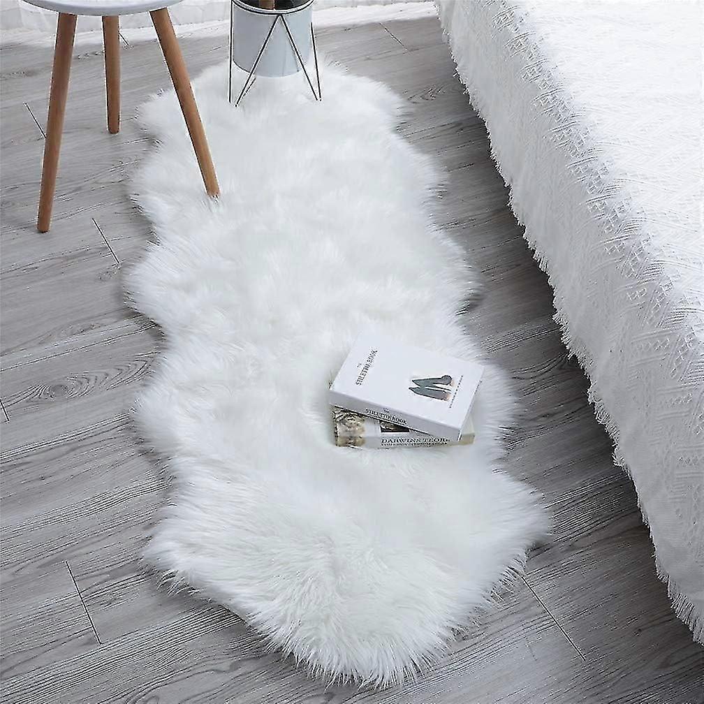Synthetic Sheepskin,cozy Feel Like Real Wool Faux Fur Rug, Man-made Luxury Wool Rug Sofa Cushion (white, 60 X 160cm)