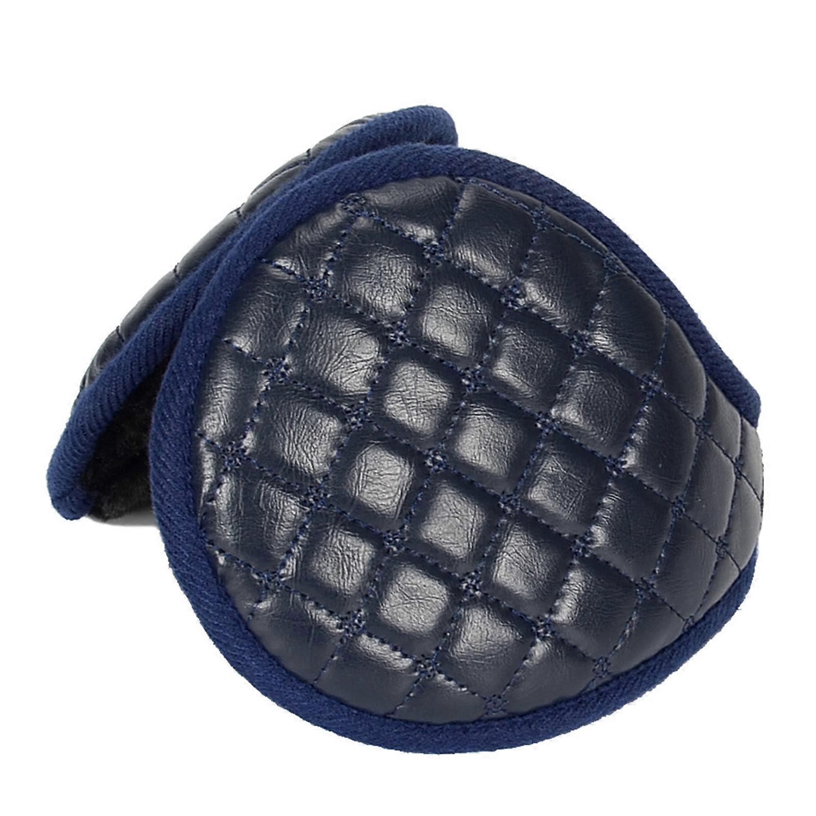 Waterproof Leather Outer Plush Earmuff Adult Elastic Ear Warmer Winter Cold Winter Presents for Students Teens Skiing Navy Blue