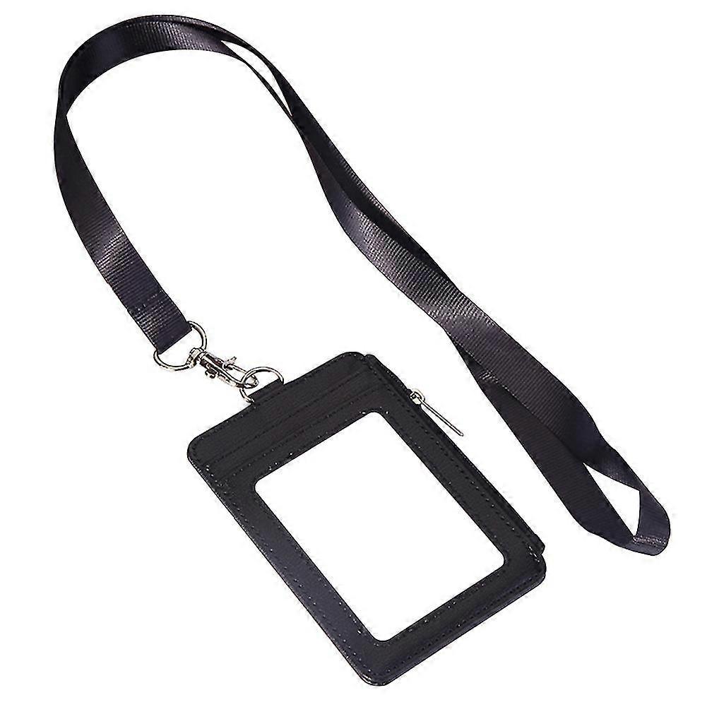 PU Leather Retractable Lanyard Multi Slot Clear Pocket Vertical ID Badge Holder