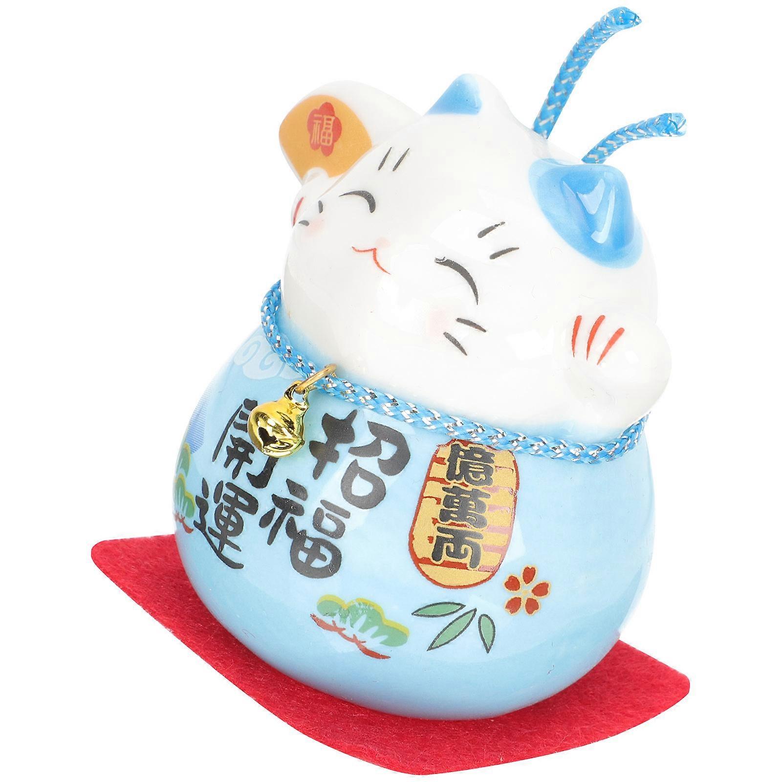 Wealth Cat Ornament Ceramic Sculpture Home Decoration Office Decoration Good Luck Symbol Blue 1Pack