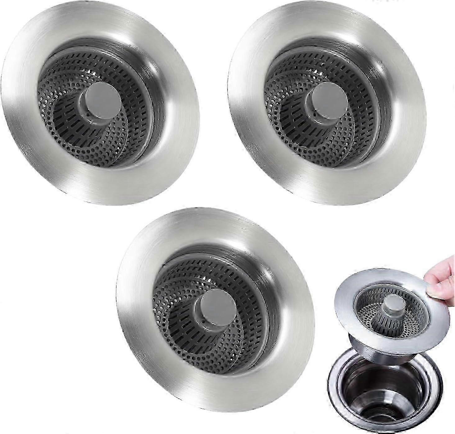 3-in-1 Stainless Steel Sink Aid, Kitchen Sink Drain Straine2r for 3-1/2' Sink, Sink Stopper Kitchen Drain, Kitchen Sink Drain Basket