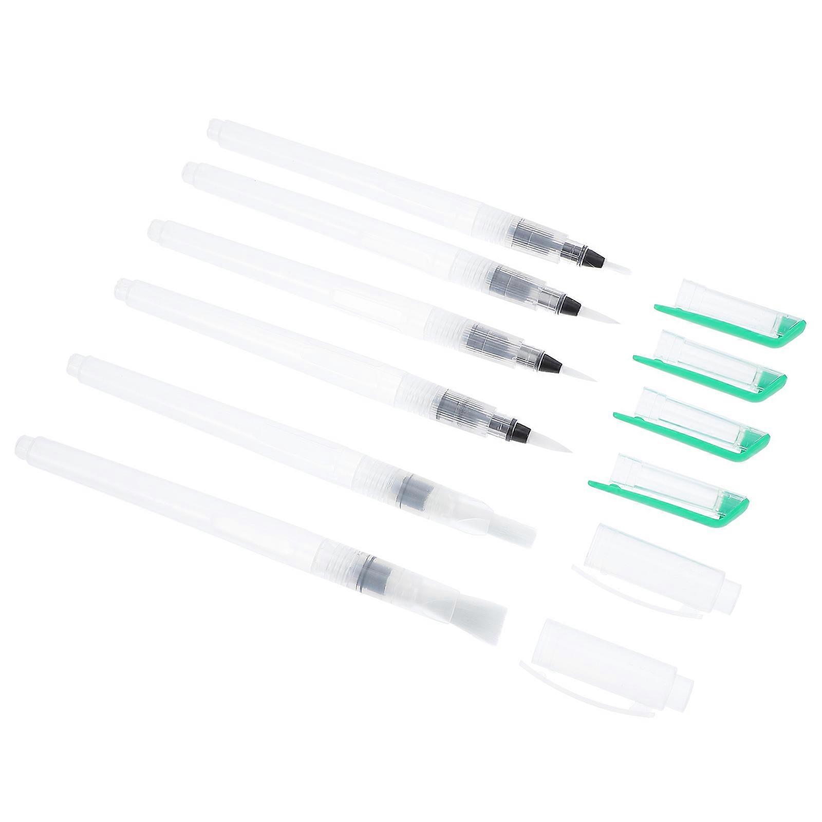 Watercolor Brush Pen 6Pcs Cylindrical Writing Brush Pen For Artists 18.5Cm Green Water Storage Function