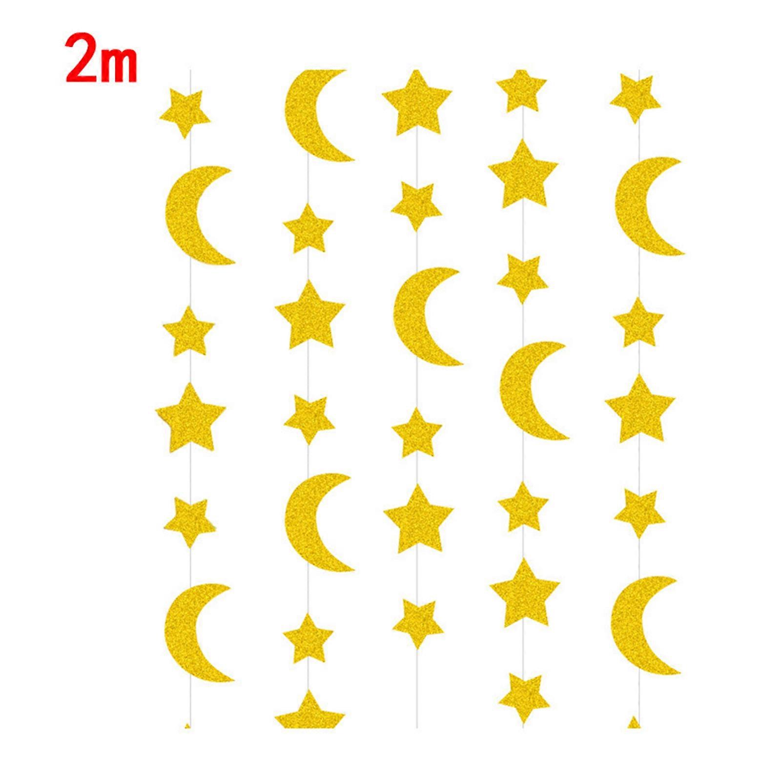 Eid Mubarak Paper Garland 2m/4m Pull Flag for Banner Gold Glitter Moon Star for Ramadan Party Birthday Wedding Decoration Supplies