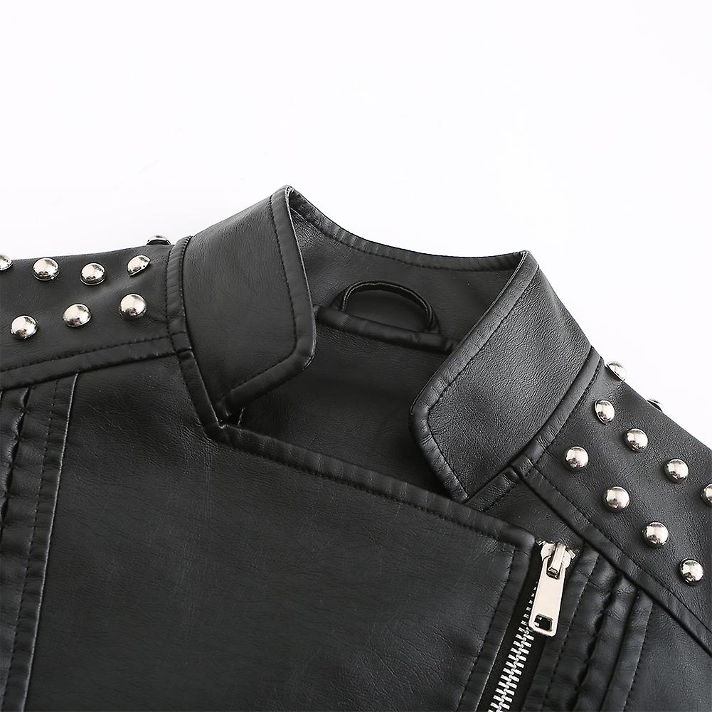 Allthemen Womens Solid Color Lapel Stud Trim Classic-Fit Leather Jacket