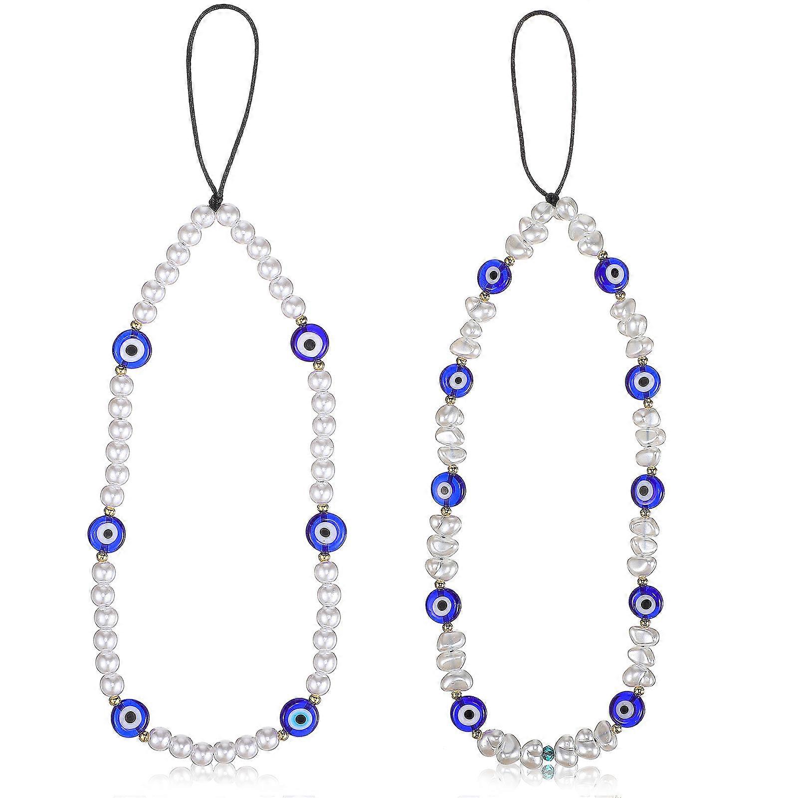 Evil Eye Beaded Phone Strap Wrist Lanyard with Cute Pearls Multi purpose Accessory for Phones, Bags, Keys & DIY Projects