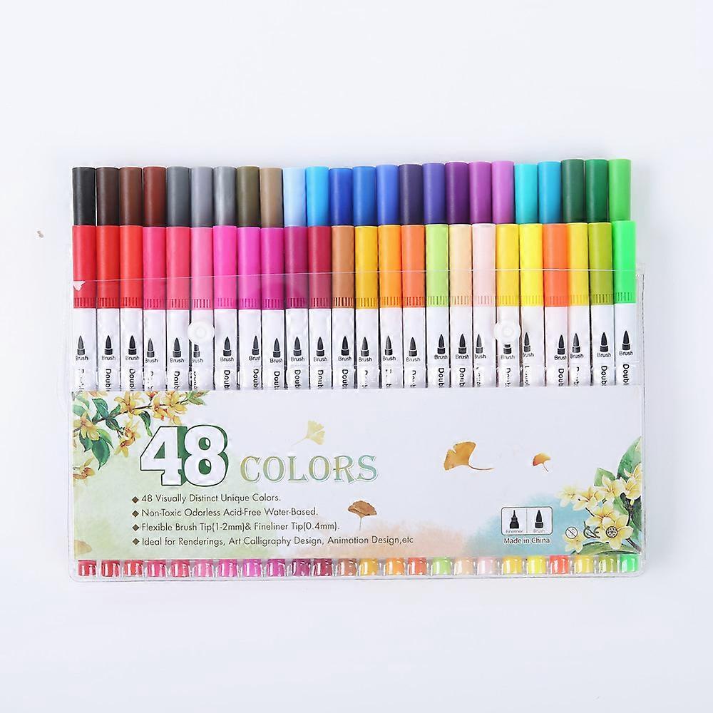 Double-headed brush pencil, line drawing pen, brush, soft head, waterborne pen, drawing and coloring, Doodle pen, 48 colors