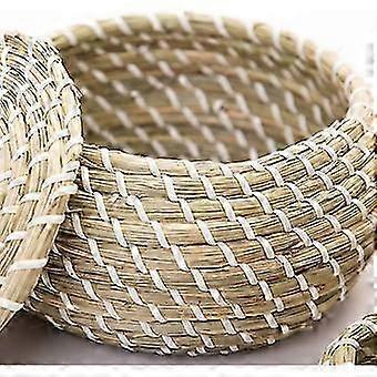Design Artisanal Seagrass Baskets, Lidded Storage Baskets Versatile For Home Decor, Set Of 3 Woven Seagrass Containers With Lids
