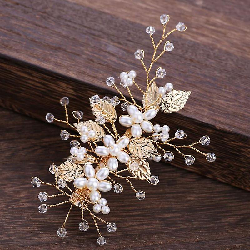 Gold Leaf Pearl Hairpins Headdress Headpiece Bridal Wedding Hair Accessories
