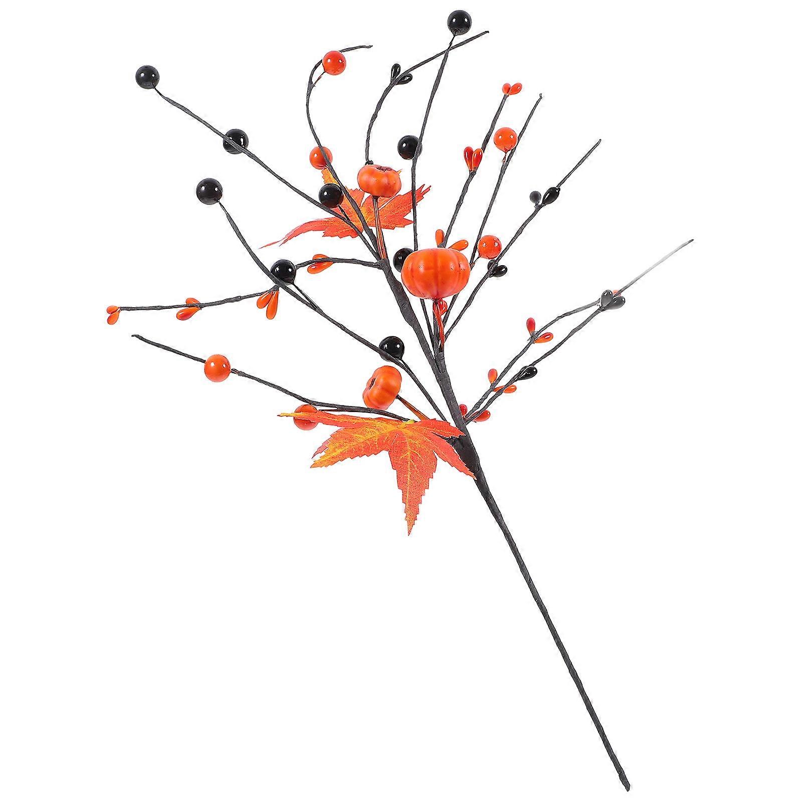 Faux Fall Maple Leaves and Pumpkin Branch with Berry Accents – Lifelike Autumn Decor for Home, Office, and Seasonal Party Decoration