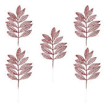 Artificial Glitter Leaves Christmas Wreath Arrangements Shopping Mall Red 41x20x0.1cm Decorative 5Pcs