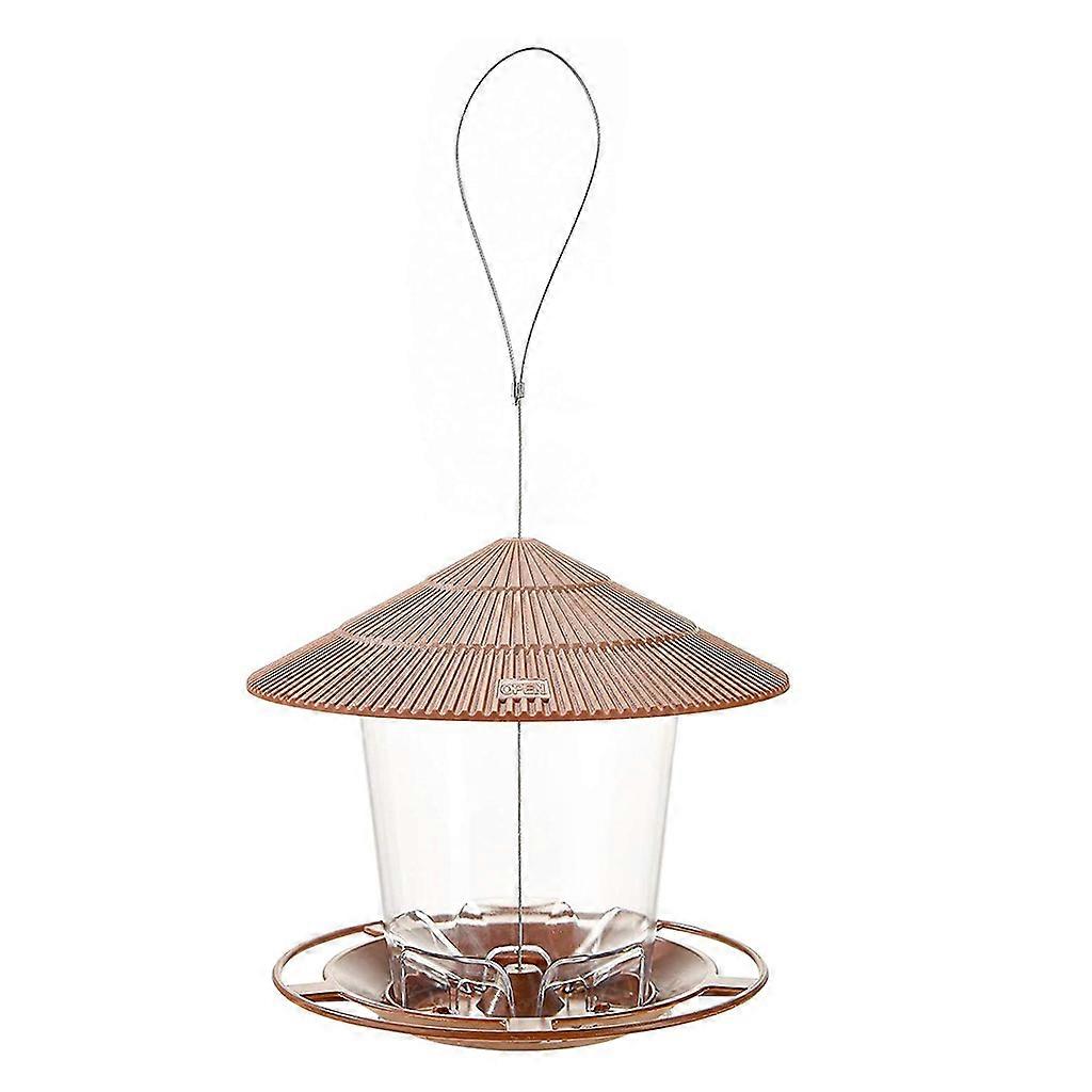 Waterproof Gazebo Hanging Wild Bird Feeder Outdoor Container with Hang Rope Feeding House Type Bird Feeder Decor Brown
