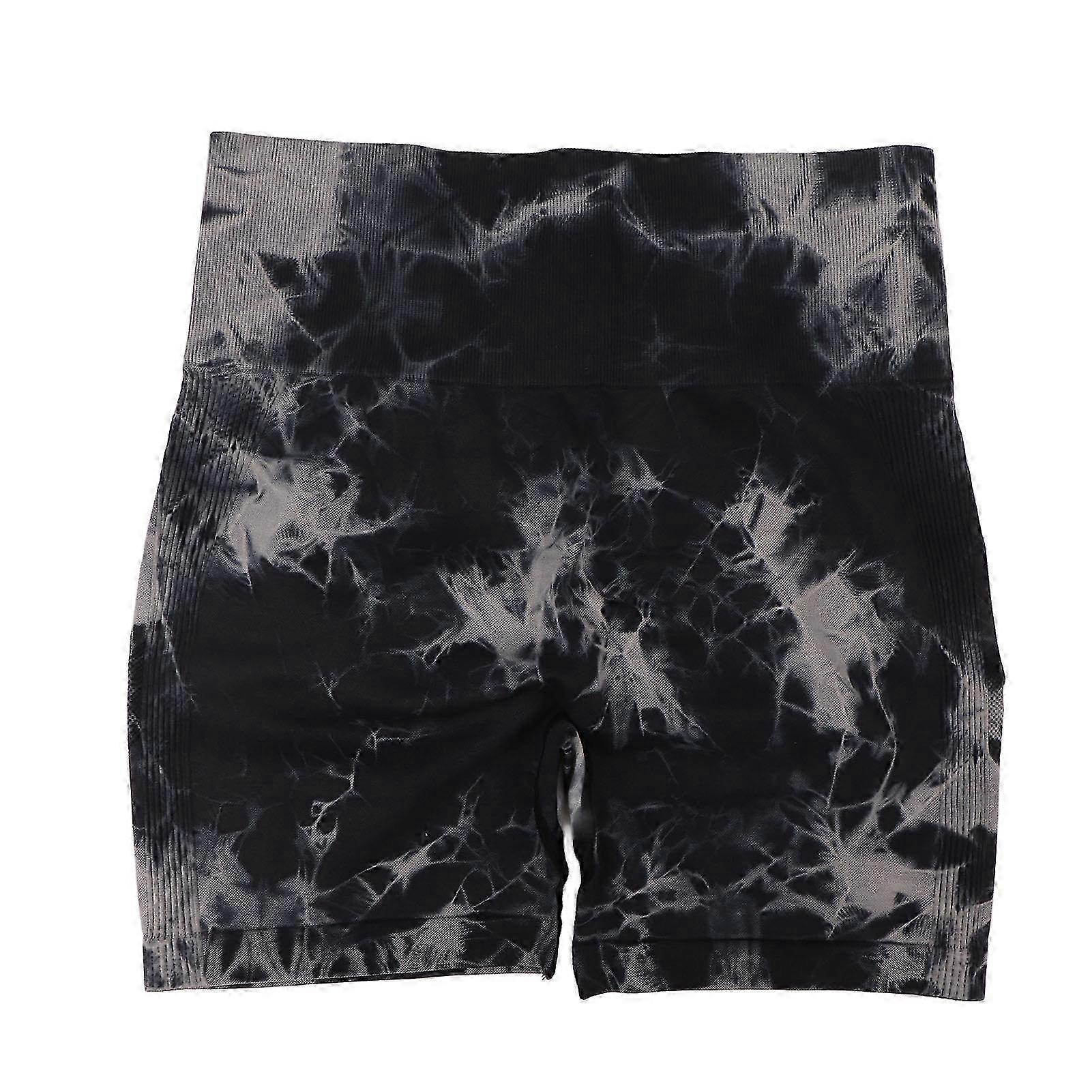 Tie Dye Yoga Shorts High Waist Seamless Black Quick Dry Soft Biker Shorts for Women S