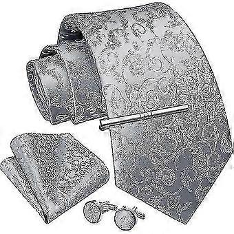 Ties For Men Formal Wedding Necktie Classic Floral Woven Jacquard Pocket Square Cufflinks With Tie Clip Set