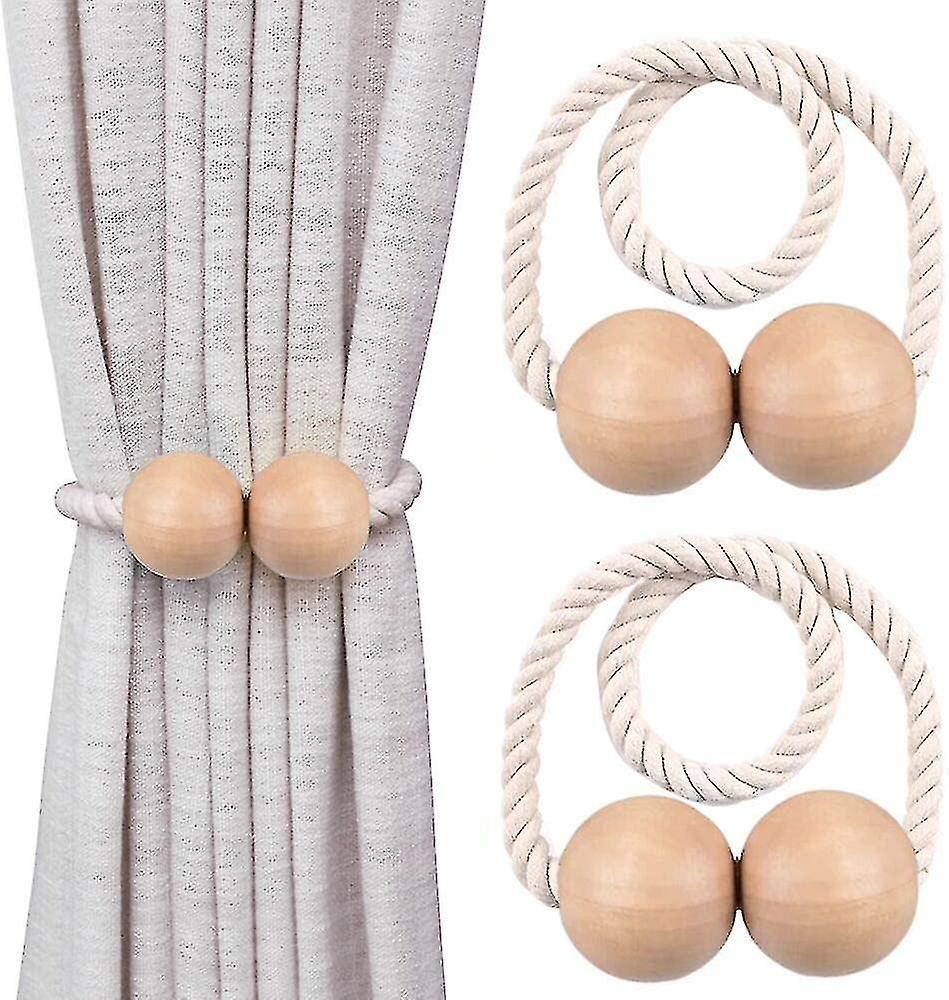 Premium Magnetic Curtain Tiebacks, Wooden Curtain Tie Backs Clips A Pair, Strong Durable Magnet Holdbacks Buckle Rope For Home, Office, Window Decorat