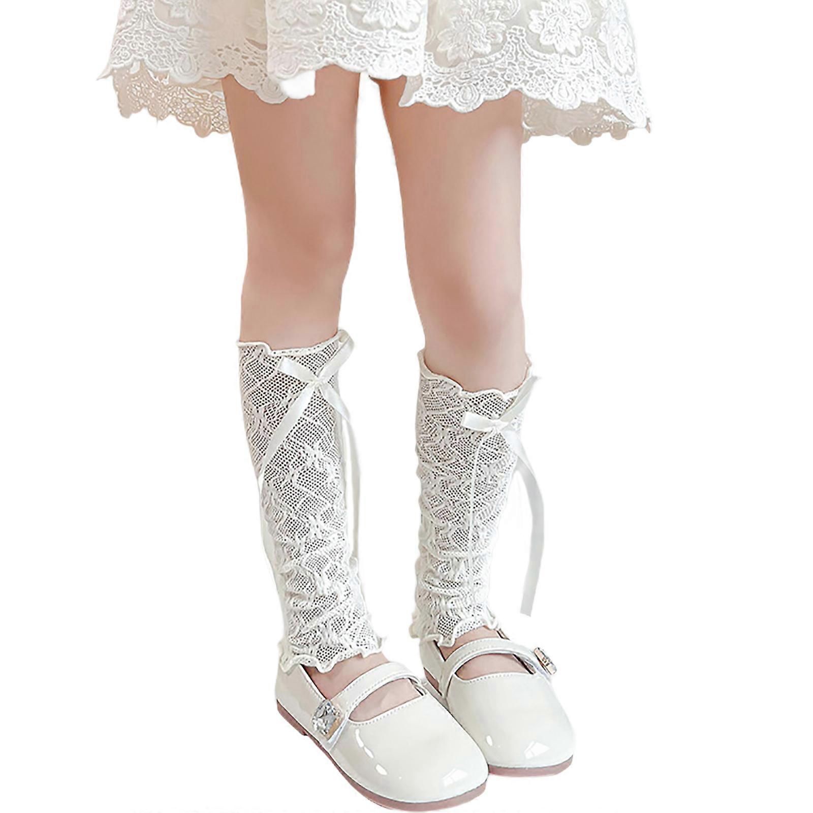 Ribbon Bowties Leg Warmer for Girl Spring Dress Leggings KneeHigh Socks Slouchy Socks Stockings Ruffle Lace Leggings White