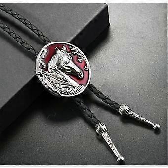 Vintage Bolo Tie: PU Leather Rope Necklace With Retro Horse Pendant - MenS Shirt Accessory For Formal Outfit - Male Necktie Dress Up Accessory