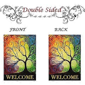 Colorful Rainbow Tree Branch Double Sided Garden Yard Flag 12" X 18", Abstract Tree Of Life Summer Spring Autumn Decorative Garden Flag Banner For Out