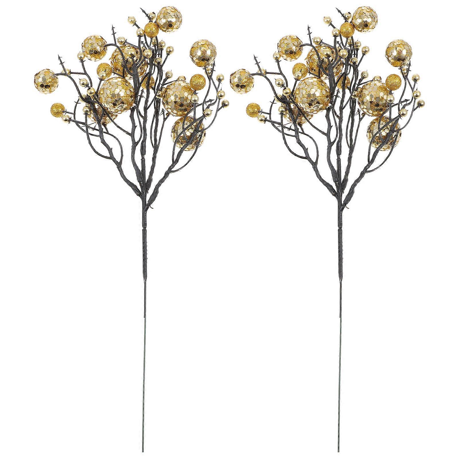 Golden Simulated Berry Branch for DIY Decorative Wreaths and Christmas Adornments 2 Pieces