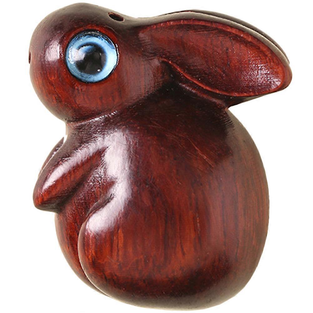 Wooden Rabbit Zodiac Pendant for Keychain DIY Crafts Decor Dark Red Vintage Style 3 5cm