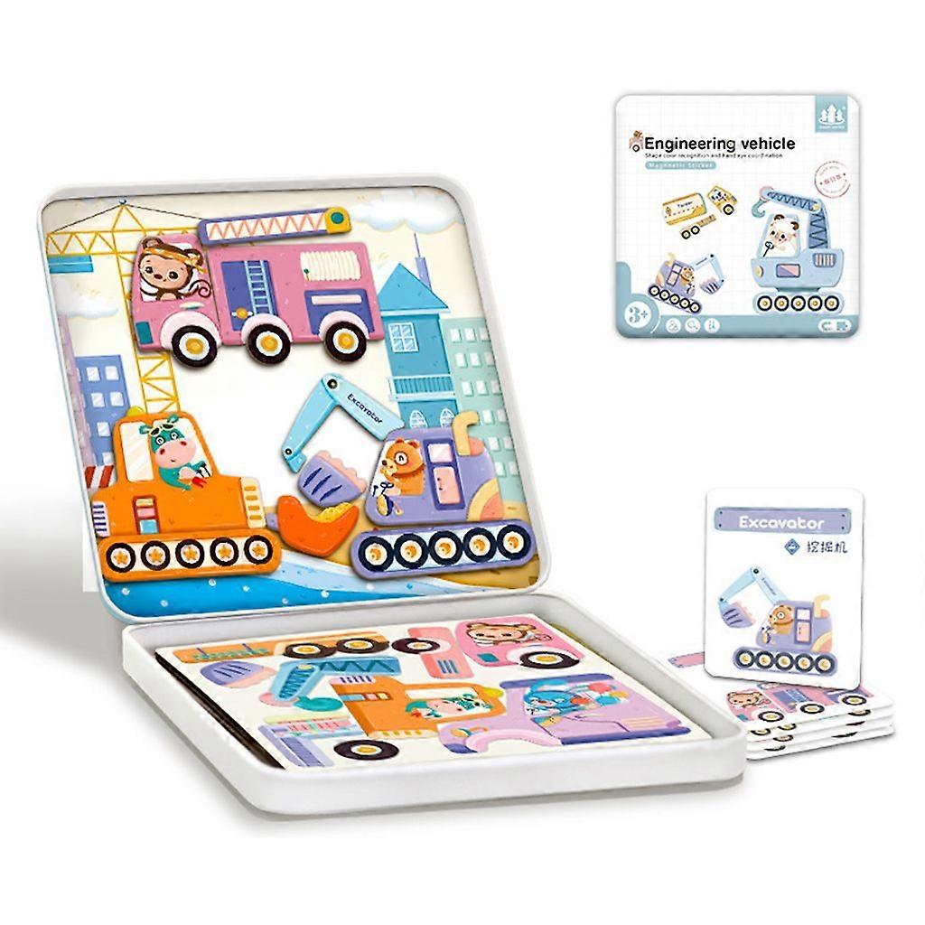 Wooden Educational Toys Magnetic Puzzle Games Animals Vehicle Drawing Board Easel for Kids Toddler 3+
