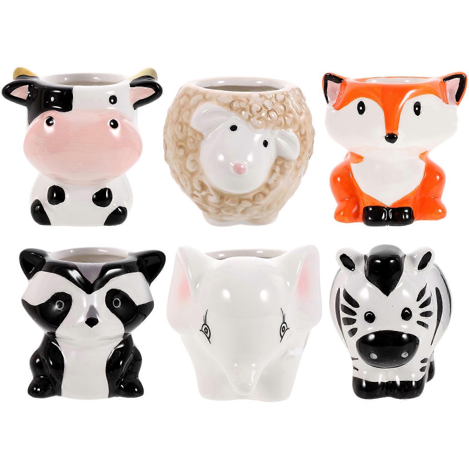 Cartoon Animal Planter Small Ceramic Pots Indoor Use Home Adornment 6Pcs