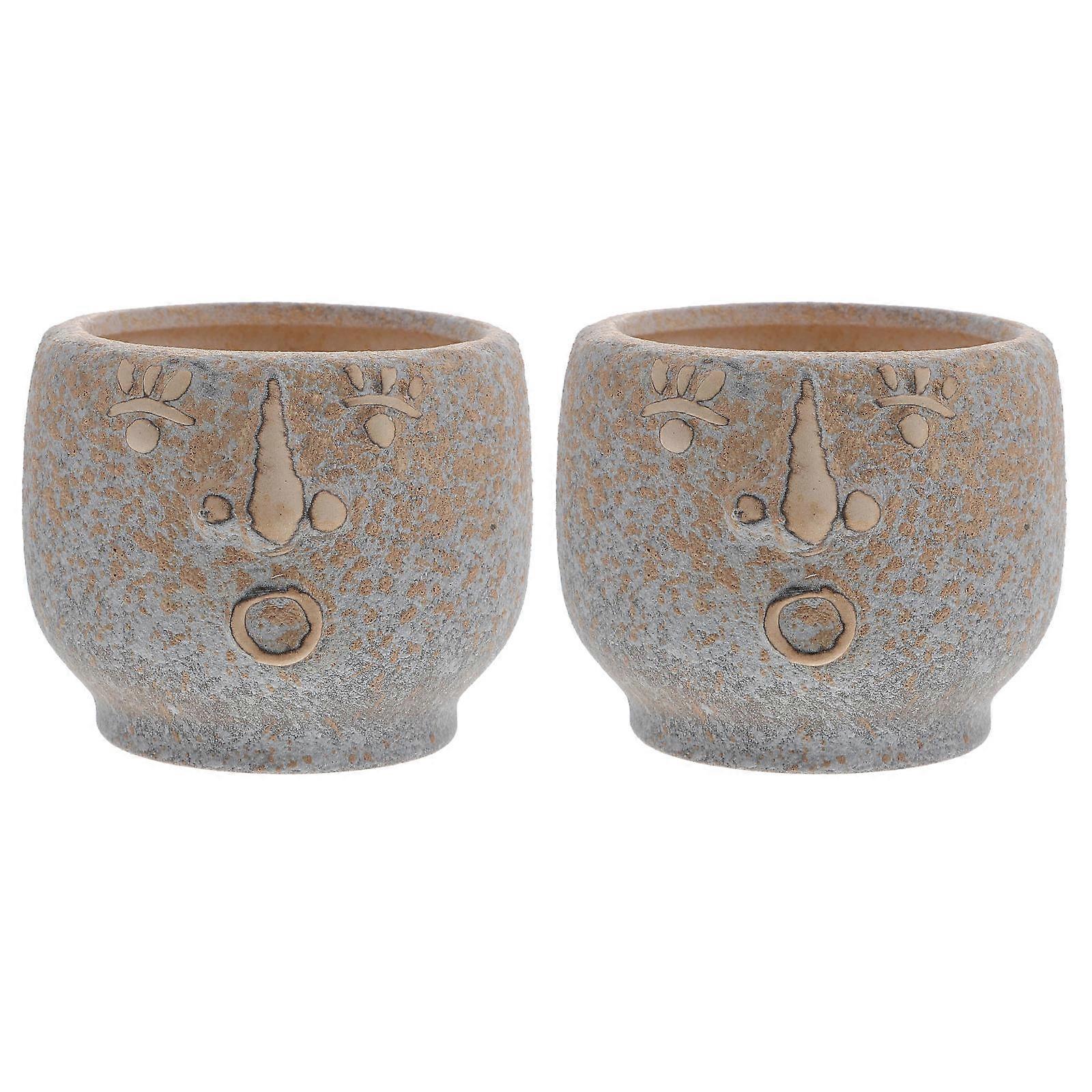 Novelty Flower Pot 2Pcs Grey Ceramic Planting Pots For Garden Lovers Balcony Decoration Round Shape