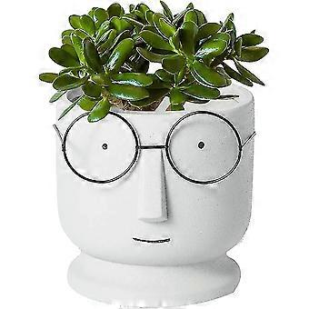 Face Planter Planter Cement Flower Pots,small Ceramic Succulent Pot,creative Glasses Face Plant Pots Cactus Pots For Home Office Wedding Decor 13*13*1