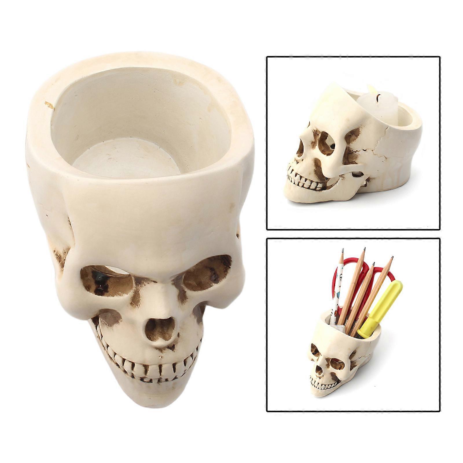 Retro Skull Flower Pot,Resin Human Skull Planter,Container for Candy, Makeup Brush Holders for Home,Bar, Night Club, Halloween Party Decoration