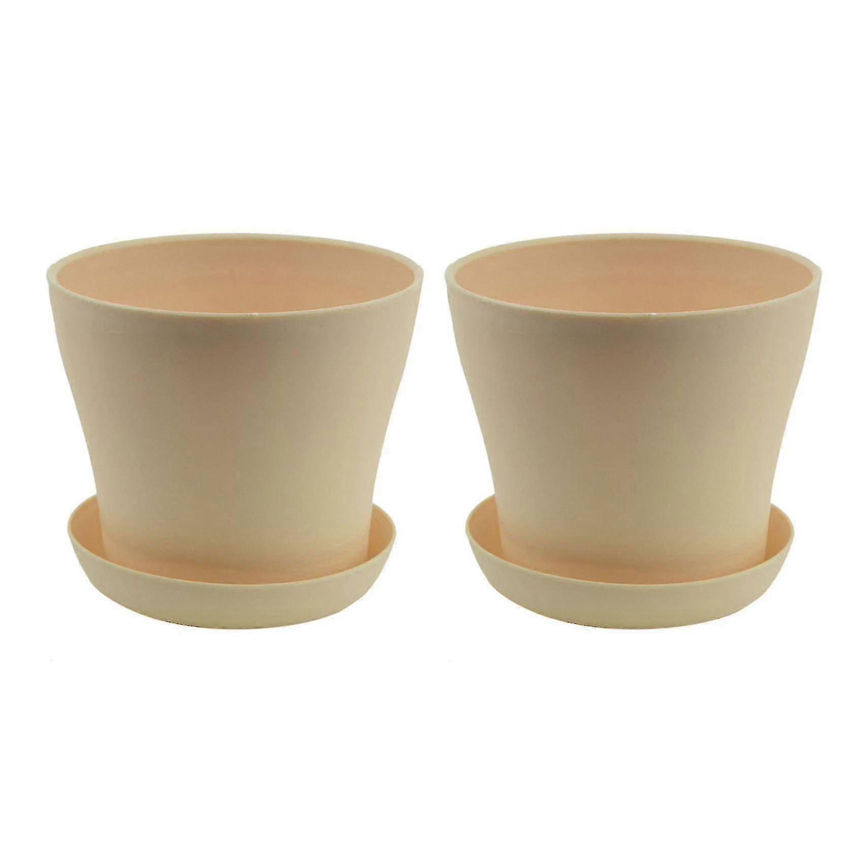 Plastic Plant Flower Pot With Tray Round Beige Upper Caliber 14cm_c