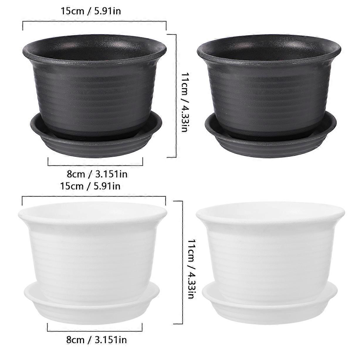 Flower Pot Resin Flower Container Indoor Plants With Drainage Holes 4Pcs 6.10x6.10x4.33 Inch White Black Grey