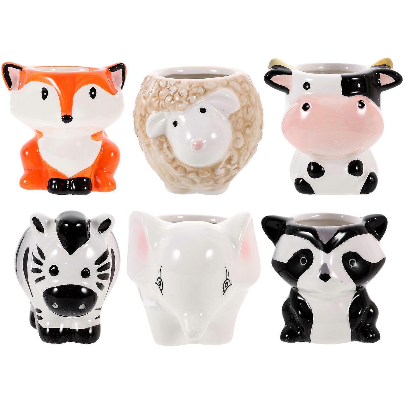 Cute Animal Flower Pots Small Ceramic Pots Balcony Decorations 6Pcs