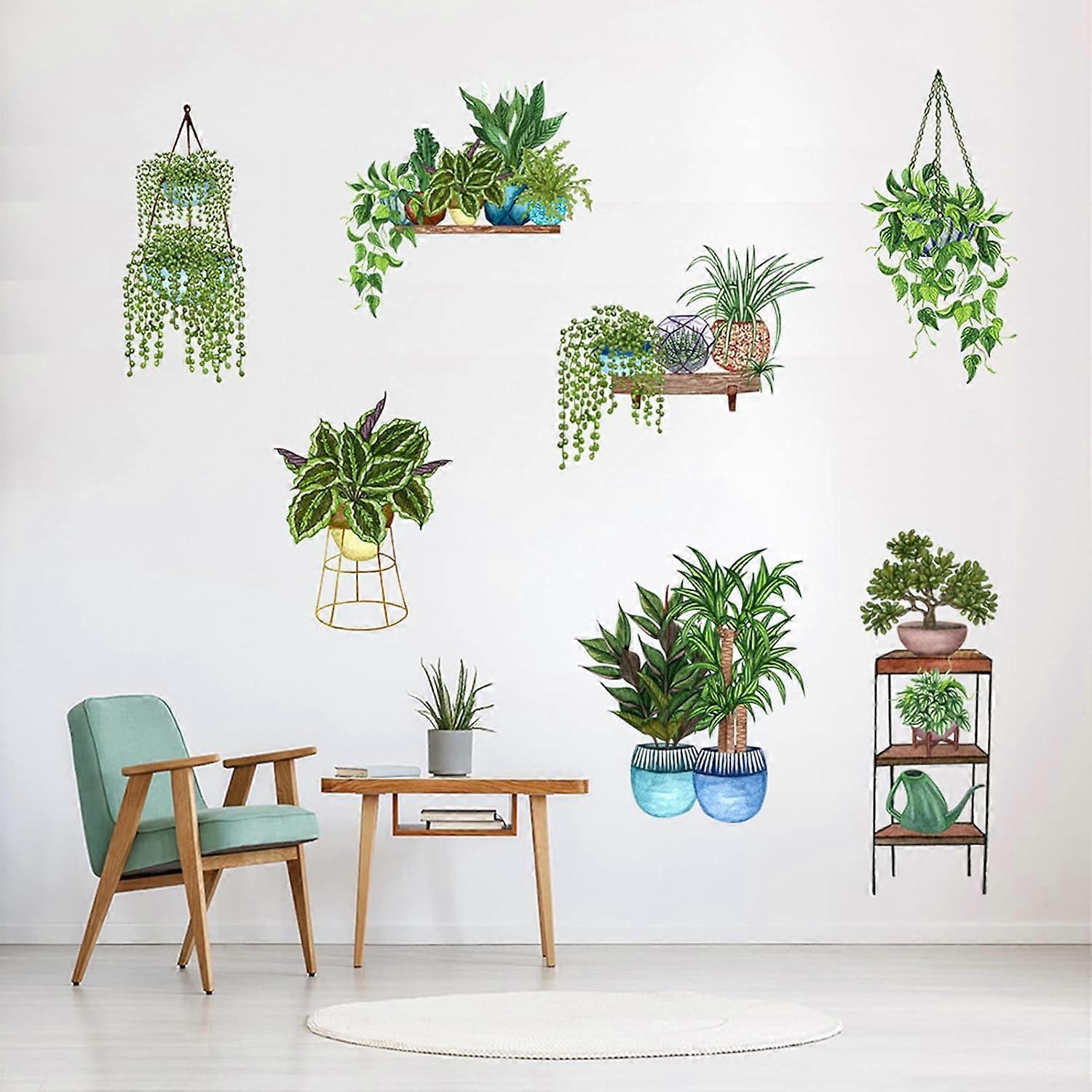 Green Potted Plants Leaves Little Garden Wall Decal Mural Art Decoration Removable Watercolor Home Wall Sticker