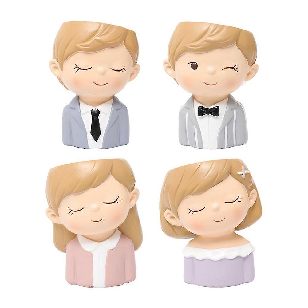 Mini Flower Pots 4Pcs Cartoon Design Succulent Planter 7.5 X 7 X 10.5 Cm Ideal For Home And Office Decoration