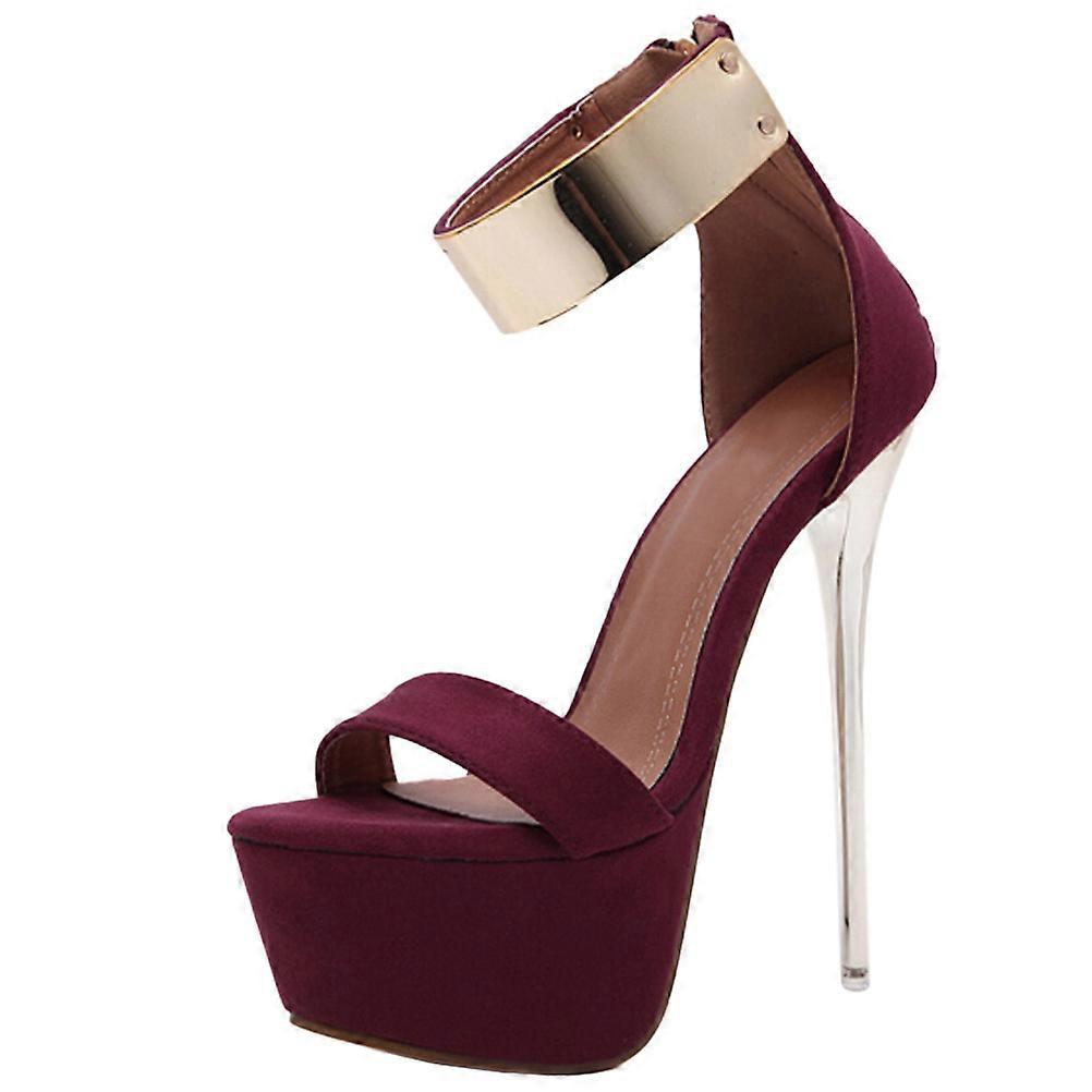 Black Heels for Women Elegant High Heel Shoes Cooling Sandals Dark Red Suede Fabric Size 39 1Pair