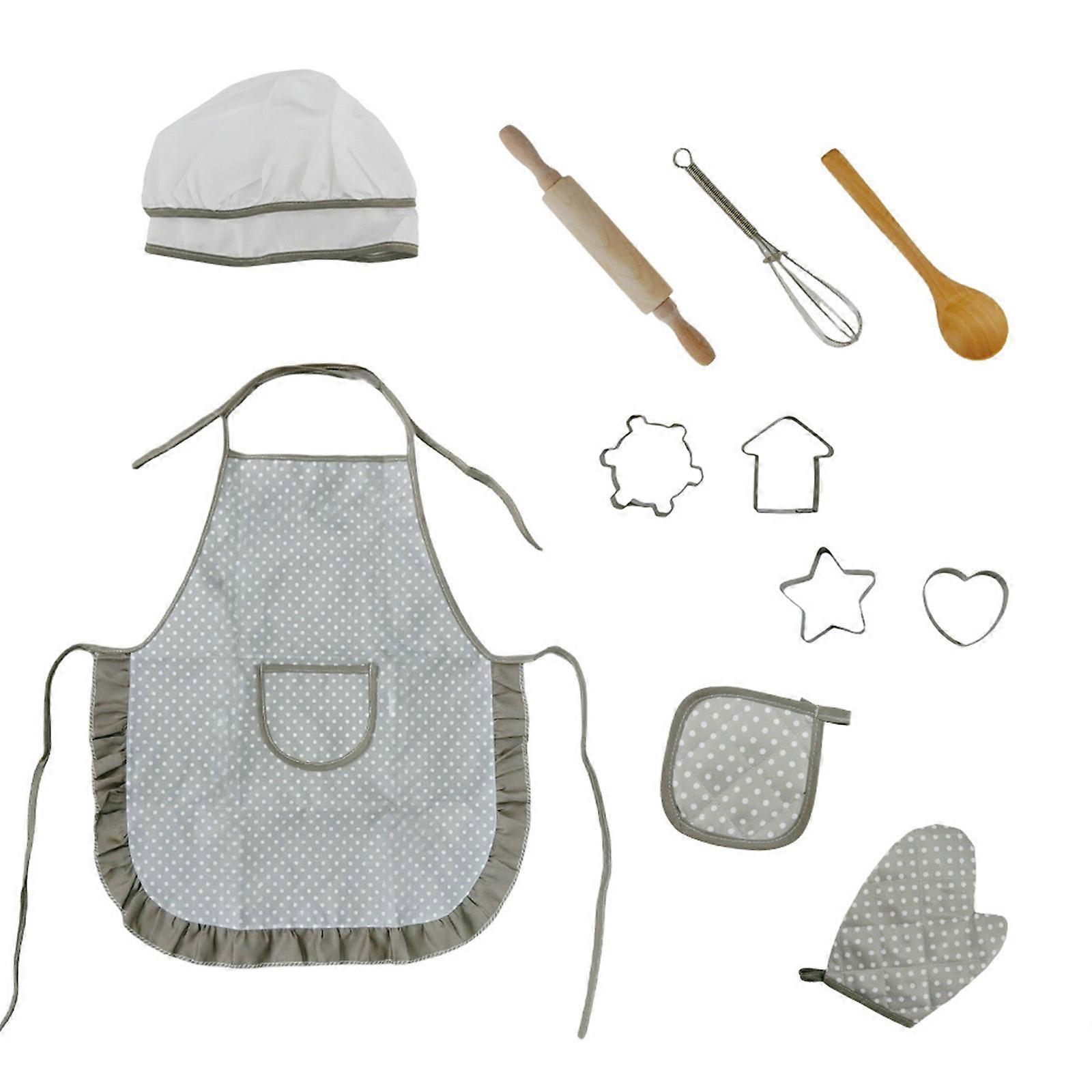Pretend Play Baking Kits 11Pieces Kids Apron With Cooking Utensils Safe Creative Learning Toy For Parent Child Gathering Multicolor