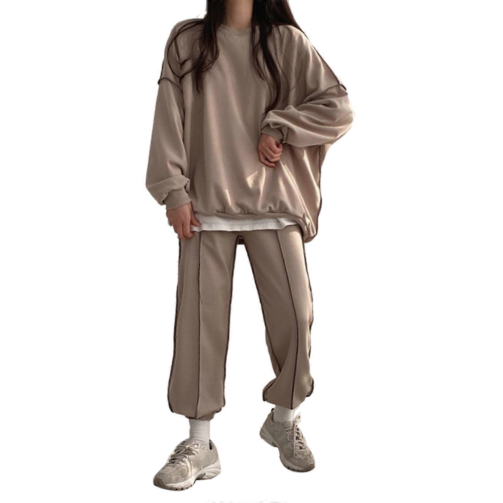Lounge Sets for Women Two Piece Outfits Sweatsuits Sets Long Pant Loungewear Workout Athletic Tracksuits Khaki XL
