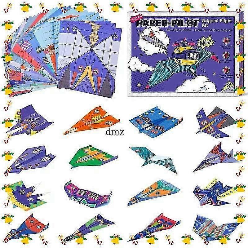 Paper Airplane Kits with 16 Classic Designs, Colorful Origami Paper, World Record Paper Planes, Airplane Christmas Gifts for Boys and Girls Ages 6-12+