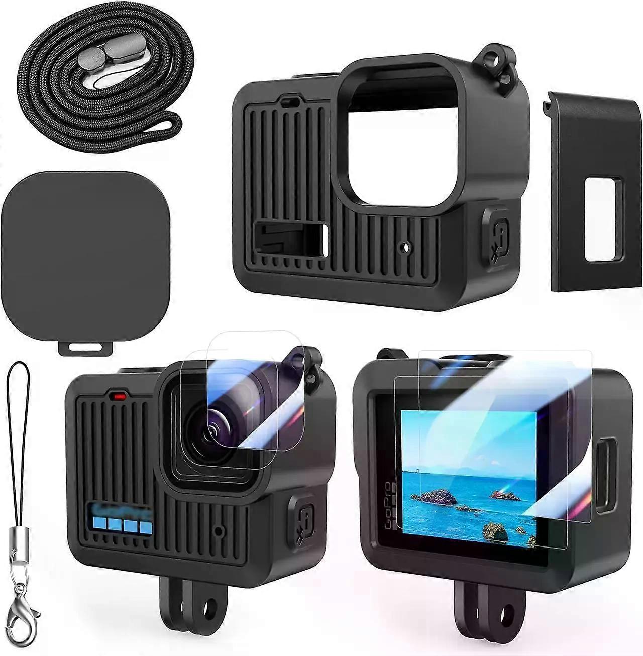 Accessories Kit Compatible with GoPro Hero 4K Action Camera Including Silicone Protective Case Tempered Glass Protective Film Lens Cap Lanyard and Bat