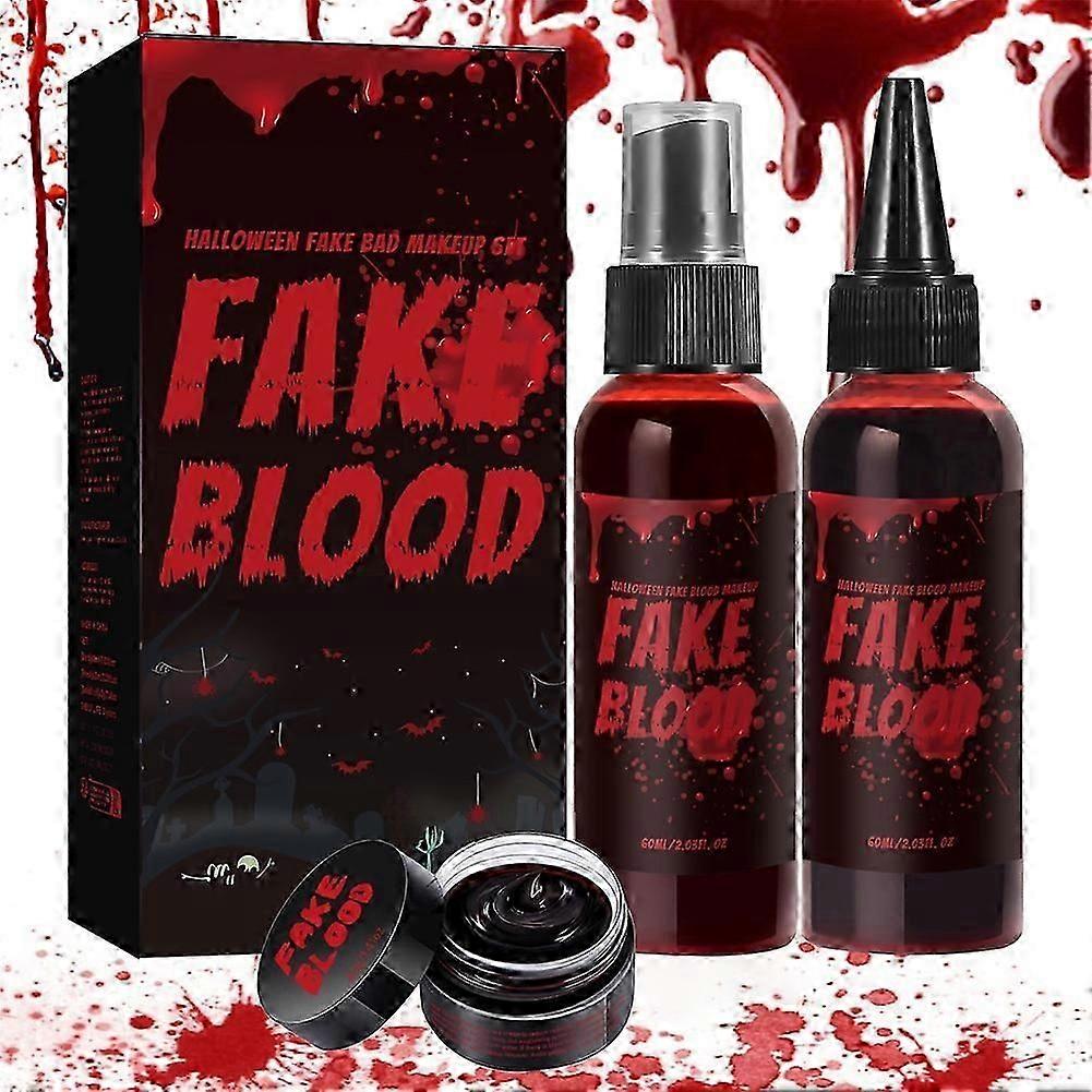 3-in-1 Halloween Fake Blood Makeup Kit - Splatter Spray, Dripping & Coagulated Gel for Realistic Wounds Zombie Vampire SFX Makeup