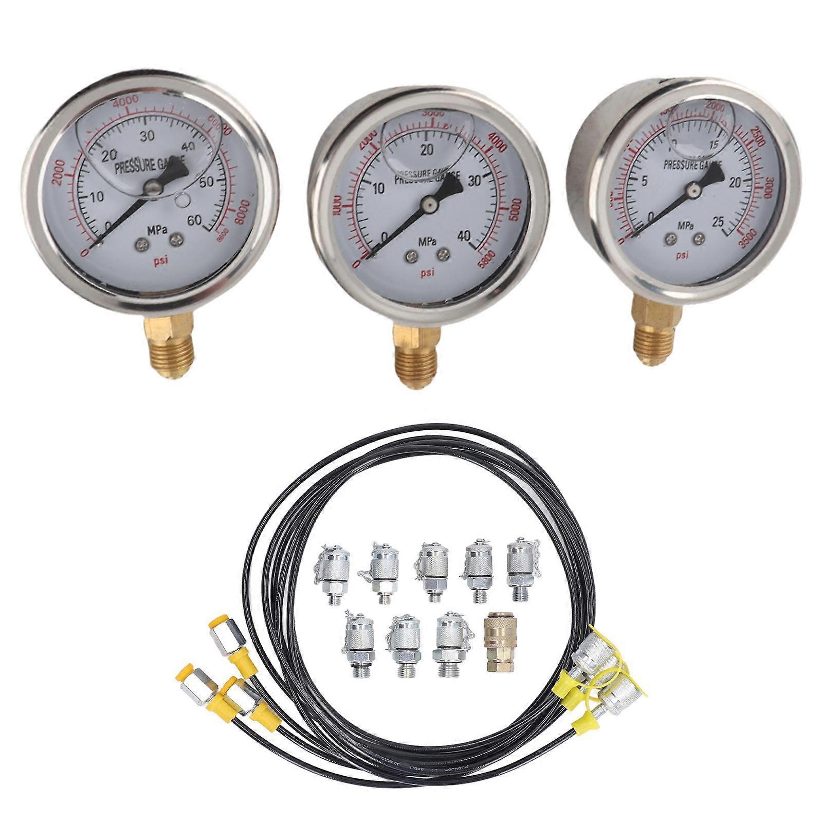 Hydraulic Pressure Test Kit Accurate Portable 25 40 60MPa Hydraulic Tester with 8 Couplings for Excavator