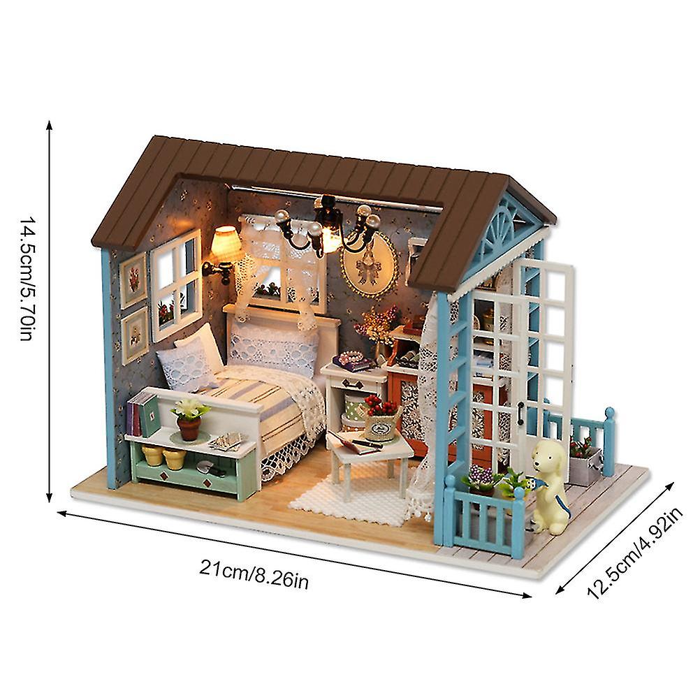 DIY Miniature Dollhouse Kit DIY Assembled Wooden Cabin Model Mini Doll House Handicraft with Furnished and LED Lights Children's Day Birthday Gift