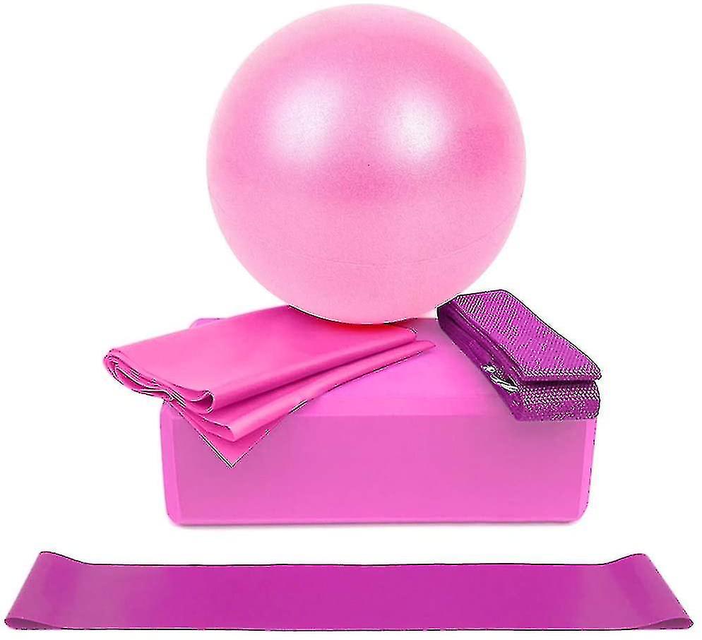 5pcs Starter Kit, Equipment Set With Ball, Brick, Stretching Strap, Resistance Loop Band, Belt, For Home Exercise Fitness