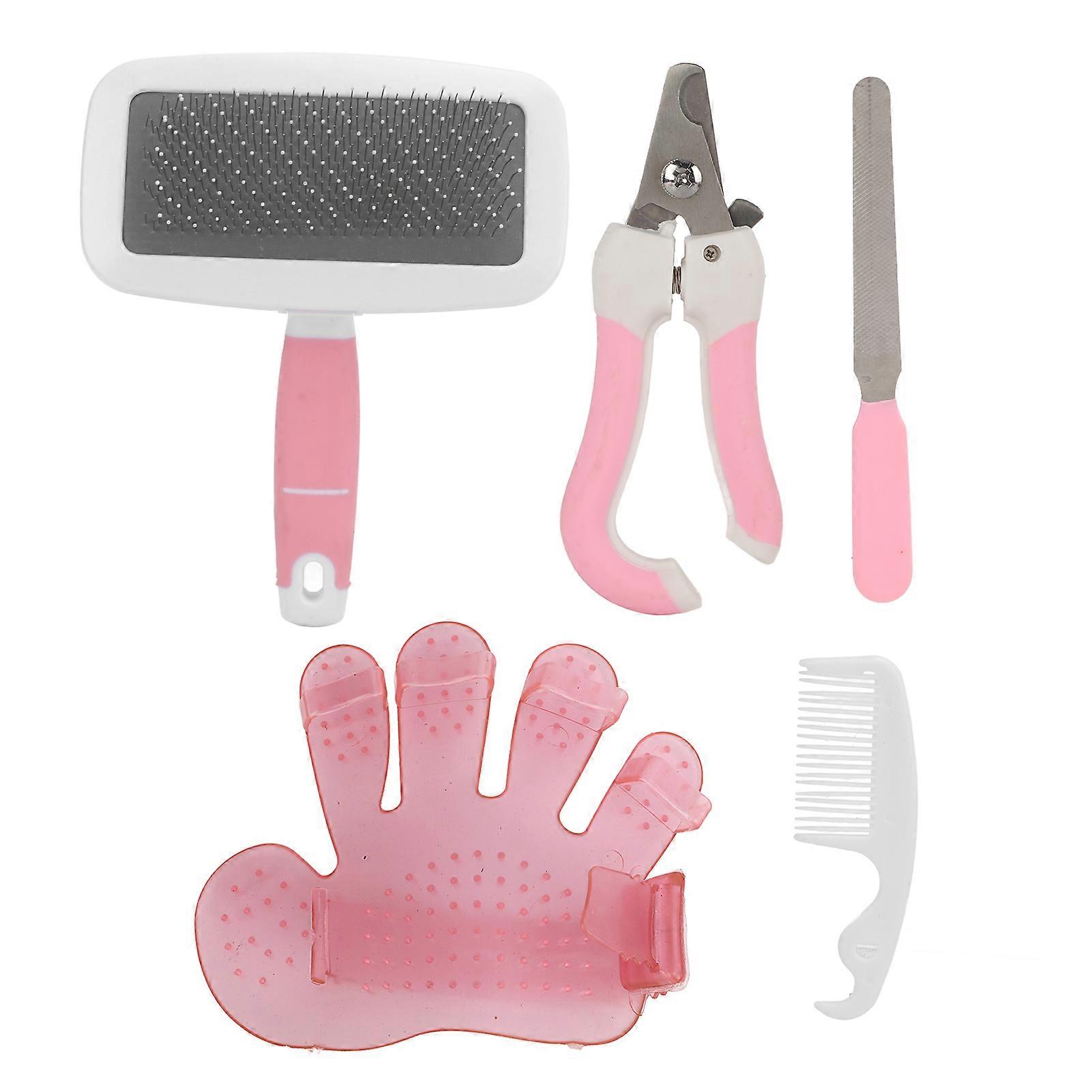 Rabbits Grooming Kit Bath Brush Comb Needle Comb Nail Clipper Nail File Set for Small AnimalL Pink
