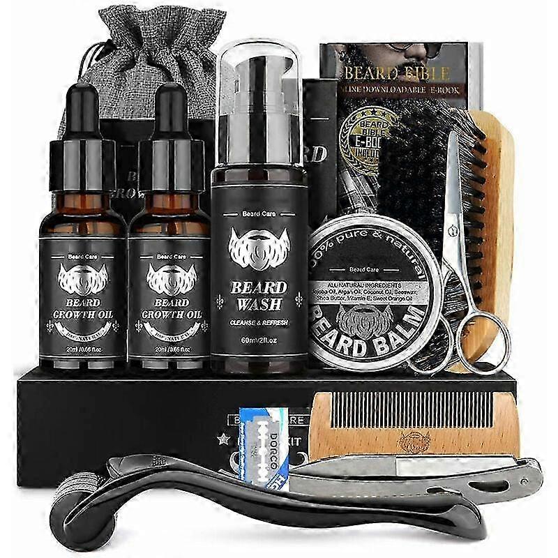 25-26 Ultimate Beard Care Kit, 11 Pieces Including Stainless Steel Scissors & Boar Bristle Brush, Men'S Luxury Set For All Beard Types,