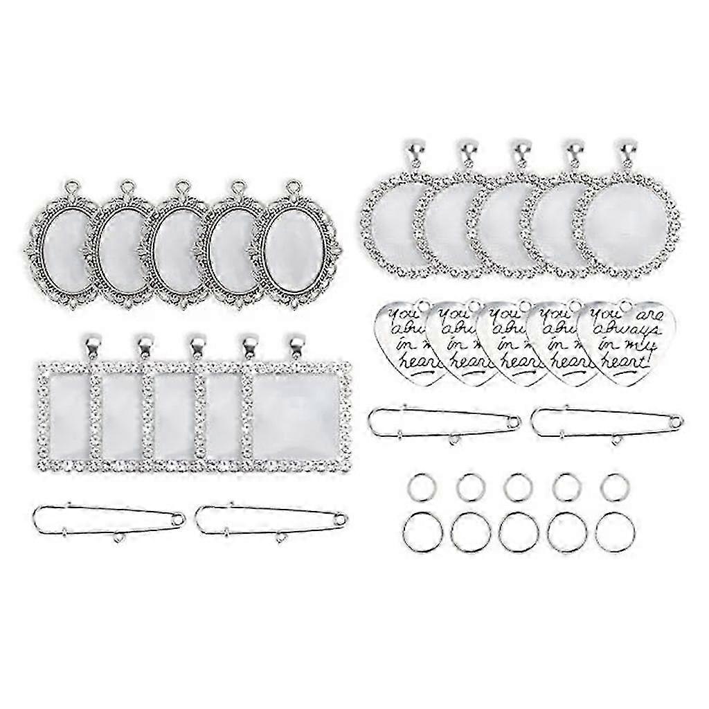 Square Oval Round Silver Pin Brooch Production Kit with Clear Glass Gemstones--