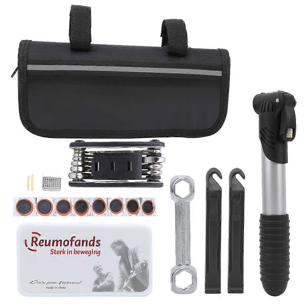 Bike repair tool kit for cycling with tire tools and storage bag