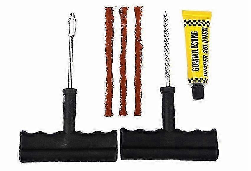 Motorcycle Tire Repair Tool Kit Studding Set Puncture Plug Tubeless Emergency Tyre Fast Repair Block Car Moto Tyre Accessories Specification: Emergency Vehicles Puncture Repair Kit for Tubeless Tires. The Car Tyre Repair kit will allow you to mend punctures quickly and effectively. Durable Plastic Handles providing great grip. Instructions Included on Back of packaging. Essential for Vehicles with Tubeless Tires. This Rasper Tool allows Tire hole widening and cleaning. Needle Tool allows Tyre Rubber Strip insertion. Package included: 1 Scraping tool, 1 split eye insertion needle 1 rubber cement 3/5 tire repair stripsAs shown Notes: Due to the different monitor and light effect, the actual color of the item might be slightly different from the color showed on the pictures. Thank you! Please allow 1-2cm measuring deviation due to manual measurement.