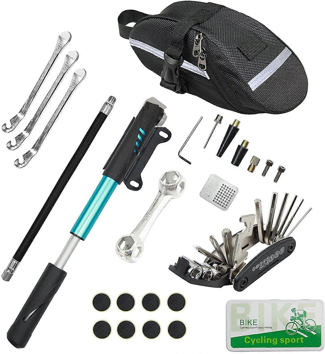 Bike Tire Repair Tool Kit Contains 16 in 1 Tool, 120Psi Mini Bike Pump